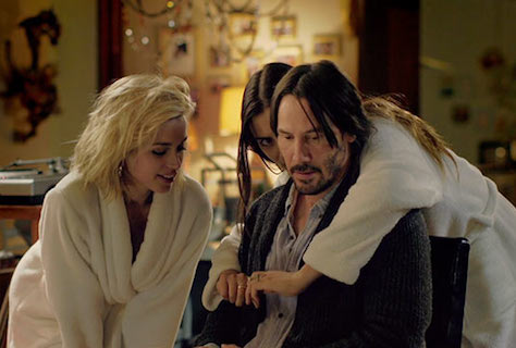 Se Evan não fosse um idiota, já estaria ouvindo todos os alarmes tocarem e vendo todas as bandeiras vermelhas se levantarem. Mas como quem interpreta (aham) Evan é Keanu, com aquele jeito de quem está sempre acabando de chegar, lá vai ele: claro, entrem. E, sim, podem pôr as roupas encharcadas na secadora, eu empresto um roupão – e ainda faço um chá, e fico aqui na sala, enquanto o motorista do Uber não chega, ouvindo as duas aeromoças (é como elas se apresentam) falar das suas aventuras sexuais.