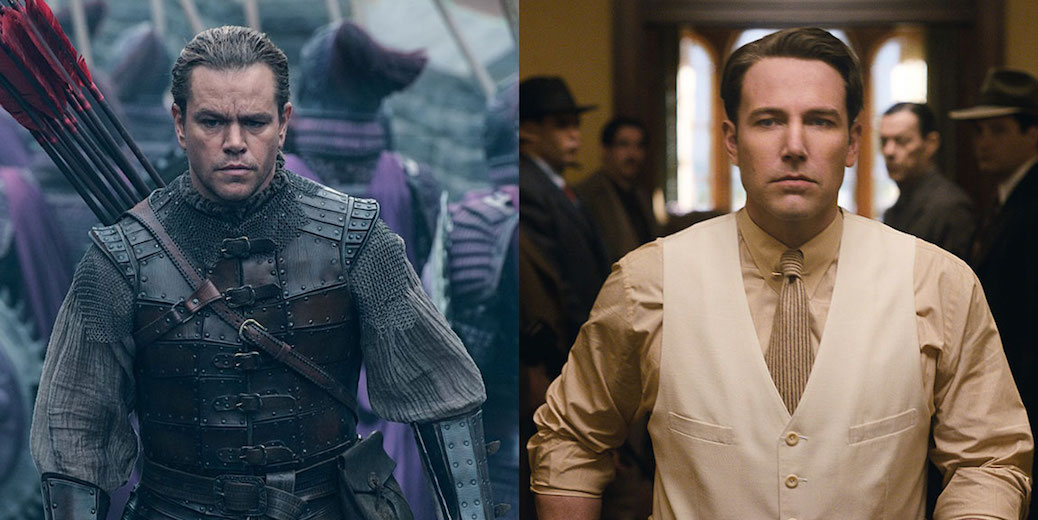 Os problemas de número 3 & 4 estão ligados: não é que A Lei da Noite seja propriamente ruim; mas é terminalmente morno. Até aqui, nos dois filmes em que combinara direção e atuação, Ben Affleck restringira seu tempo em cena. Montou um elenco de conjunto para o ótimo Atração Perigosa, e foi coadjuvante no muito bom Argo. Carregar o personagem central e dirigir algo em que ele nunca se aventurara antes – um filme de época – não deu certo. principalmente, Affleck parece não ter conseguido dirigir a si mesmo nessas circunstâncias. Fez um Batman tão decente, e aqui está nos seus piores momentos como ator: duro, sem expressão (ou com a expressão errada) e sem química com as parcerias. Acredito que ele teria colocado muito mais sangue na direção se tivesse escalado outro protagonista. Por exemplo, Casey Affleck ou Matt Damon. Pena que Casey estava ocupado estraçalhando em Manchester à Beira-Mar – e Damon, pagando mico na Muralha da China.