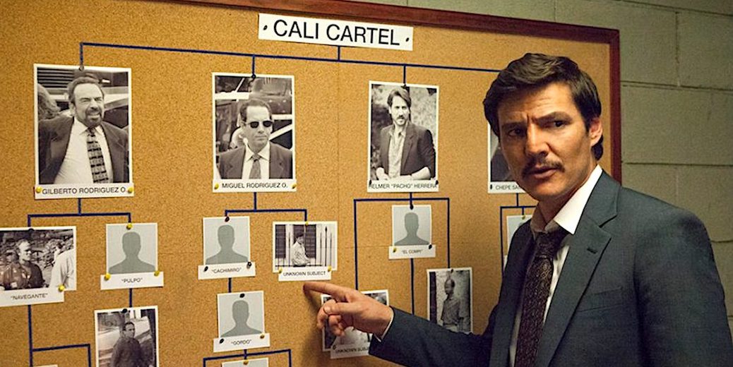 Morto Escobar, imediatamente o jogo passou a ser apitado pelos “cavalheiros de Cáli”, que de cavalheiros, claro, não têm nada. Teoricamente sócios igualitários, os irmãos Gilberto (Damián Alcázar) e Miguel Rodríguez (Francisco Denis), seu centro-avante nova-iorquino Chepe Santacruz (Pêpê Rapazote) e seu capitão colombiano Pacho Herrera (Alberto Ammann) são tão brutais quanto Escobar, mas dão muito menos na vista: Gilberto, o cérebro do negócio, prefere a diplomacia ao massacre. Ou, quando a diplomacia falha, prefere ocultar os cadáveres a ostentá-los, como fazia Escobar. Gilberto sabe que o tráfico não é ofício para a vida toda, e está tratando de legimitizar os negócios; até já fechou um acordo com o governo colombiano para se entregar dentro de seis meses (durante os quais pretende lucrar ao máximo), por penas bem brandas, só para satisfazer a opinião pública. Esse é o acordo que Peña quer desconsiderar, por achá-lo escandaloso. Mas por que a embaixada americana em Bogotá, a CIA, o ministro da Defesa colombiano etc. etc. desconversam quando Peña expõe a necessidade de apreender os cavalheiros de Cáli, ou mesmo tratam de atrapalhar deliberadamente a DEA? Para quem acompanha o noticiário brasileiro, por exemplo, as respostas não vão causar grande espanto. Embora devessem.