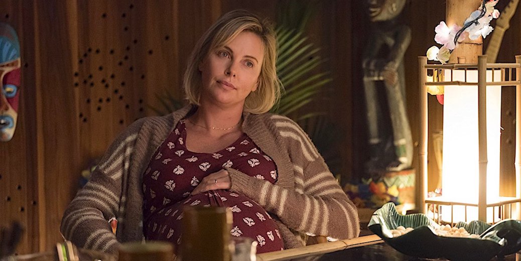 Assistindo a Tully, eu não sabia se sentia mais pena ou admiração pela protagonista Marlo, mãe de uma menina e um menino – ele, com um diagnóstico vago de autismo – que está para dar à luz o terceiro bebê. Interpretada por Charlize Theron com uma variedade infinita de sentimentos, Marlo já entrou na licença-maternidade mas, mesmo sem ter de sair para o trabalho todo dia, está meio doida com a barriga de nove meses, as duas crianças, a casa e o marido boa-gente porém distraído do corpo-a-corpo doméstico. Como a maioria das mulheres americanas de classe média, Marlo não tem empregada, faxineira, babá nem avó que dê uma força de vez em quando; tem ela e ela mesma. Charlize é tão boa que não transforma só a si própria para fazer a personagem: ela transforma até o ar à sua volta, envolvendo Marlo numa nuvem de cansaço. Com o nascimento de Mia, o esgotamento chega ao insuportável. Assim como o diretor Jason Reitman resumia a rotina de viagens ininterruptas de George Clooney em uma montagem brilhante em Amor Sem Escalas, aqui ele mostra o massacre das fraldas sujas, da amamentação e do acorda-e-dorme-e-acorda do bebê em um par de minutos que deixam até o espectador na lona. Marlo conclui que vai enlouquecer: finalmente, pega o telefone da babá noturna com que seu irmão rico quer presenteá-la, nem que seja só por essas primeiras semanas da vida de Mia.