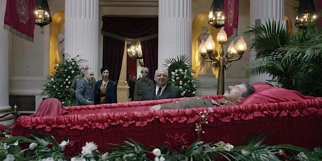Como anuncia o título, entretanto, não é de Stalin que o filme trata, mas do que se segue a ele: não apenas o súbito vácuo do poder e os conchavos decorrentes, como a extrema infantilização política dos quadros do Kremlin. Figurões como o titubeante comissário Georgi Malenkov (Jeffrey Tambor), o desfrutável Vyacheslav Molotov (Michael Palin), o bufão Nikita Khruschev (Steve Buscemi), o sinistro Beria e os oportunistas Nikolai Bulganin (Paul Chahidi) e Lazar Kaganovich (Dermot Crowley) fazem reuniões de teatro do absurdo. Khruschev, empurrado para a tarefa humilhante de mestre de cerimônias do funeral (“Cortinas com ou sem franzido?”, pergunta, ansioso, seu assistente), revela-se bem mais que um pândego, e entra em guerra com Beria pelo controle da situação e da doidinha filha de Stalin, Svetlana (Andrea Riseborough). Todos fazem o que podem para neutralizar o filho bêbado do ditador, Vasily (Rupert Friend). Quando as ordens e contraordens provocam um massacre nas ruas de Moscou, entra em cena o grosseirão marechal Zhukov (Jason Isaacs), que arruma a bagunça do jeito de sempre.