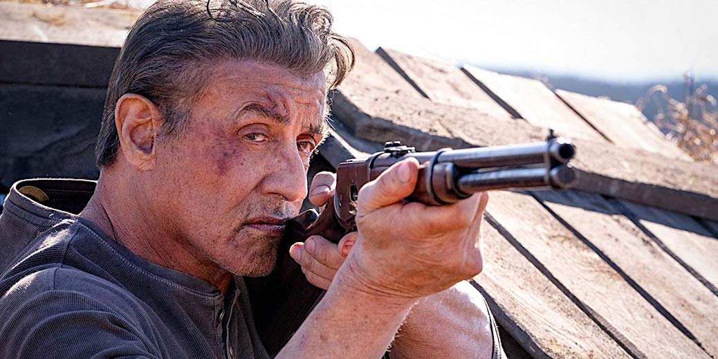 O efeito é acentuado pela reverência com que o roteiro — coassinado por Stallone — trata o personagem (a auto-homenagem do fim é constrangedora) e tenta restabelecer suas motivações com citações heréticas ao clássico Rastros de Ódio. Na abertura, dezenas de policiais procuram, numa montanha, três turistas ameaçados pela tromba-d’água que já começa a despencar. Mas é claro que é Rambo quem os encontra — e então, tendo entregado uma sobrevivente aos socorristas, não se perdoa por não ter conseguido salvá-los todos: Rambo não é homem de comemorar vidas poupadas se há vidas perdidas a remoer. De volta à sua fazenda, no sopé da serra do Arizona, ele faz silêncios constrangidos quando a empregada interpretada por Adriana Barraza, de Babel, diz quanto foi importante ele tê-la deixado ficar ali para criar sua neta, a jovem Gabrielle (Yvette Monreal): Rambo não é o tipo de sujeito que se sinta à vontade com demonstrações de gratidão. Prefere refugiar-se no pasto ensinando montarias a fazer volteios como os dos cavalinhos de Viena — uma oportunidade para que Sylvester Stallone dê mais um lustro no seu ego exibindo habilidades até aqui ignoradas (e, neste contexto, bastante insólitas). Findo o dia, ele se recolhe não à casa ampla, mas aos túneis lúgubres que cavou sob a pradaria: ele continua traumatizado demais para usufruir algum convívio ou conforto. Só perto de Gabrielle, a quem considera uma filha, ele relaxa.