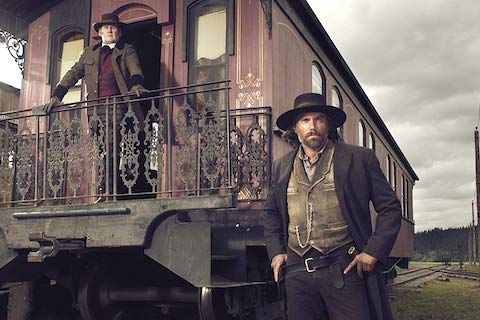 Produzida pelo canal AMC entre 2011 e 2016, esta é uma das minhas séries preferidas da década, e me enchia de tristeza que ela não estivesse disponível em nenhuma plataforma brasileira. Pois a primeira das cinco temporadas estreou esta semana na GloboPlay. Cullen Bohannon, ex-latifundiário, ex-dono de escravos e ex-oficial do exército do Sul, chegou ao fim da Guerra Civil (1861-1865) com uma dose extra de ódio da União: enquanto ele lutava, soldados do Norte invadiram sua casa e mataram a sua família. Findo o conflito, ele sai no encalço dos assassinos até o meio das grandes pradarias do Oeste, onde a ferrovia Transcontinental está sendo construída. E por lá fica, contratado como capataz – Cullen é o tipo do sujeito que impõe respeito sem esforço – pelo robber baron encarregado daquele trecho (Colm Meaney, pingando vigarice). Anson Mount em geral não é um ator que se destaque muito, mas o fato é que nasceu para interpretar o protagonista desta série, um sujeito em que honra e desonra colidem de maneiras cataclísmicas – e que, veja-se que ironia, descobre que só os negros libertos empregados na ferrovia estão em situação tão periclitante e desesperada quanto a dele. Anson Mount faz um belíssimo trabalho, melhor a cada episódio e a cada temporada, aprofundando os temas de violência e redenção deste western sujo e malvado, filmado em locações deslumbrantes (Alberta, no Canadá, finge-se de Oeste americano) e repleto de personagens envolventes. Por exemplo, a prostituta que foi raptada por índios na infância, cresceu com eles e tem uma tatuagem peculiaríssima no queixo – muito bem interpretada por Robin McLeavy, e baseada numa personagem verídica. Assim como The Son e Godless, as duas outras séries incluídas neste post, Hell on Wheels é uma legítima representante do que se costuma chamar de faroeste pós-moderno: se até os anos 50 o cinema tratava a expansão americana para o Oeste como um avanço da lei e da civilização sobre um território selvagem, de lá para cá esse sinal fica cada vez mais invertido – a violência, a selvageria e a ganância é que avançam sobre um Oeste antes equilibrado em um estado duro e inóspito, mas natural.