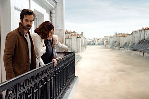Uma bruma espessa e amarelada, vinda sabe-se lá de onde, começa a tomar as ruas de Paris, até se depositar como um colchão, imóvel, até a altura dos quartos andares. Quem foi exposto a ela, morreu. Quem conseguiu subir até as clássicas mansardas dos quintos e sextos andares dos prédios parasienses ainda sobrevive. Muitos conseguiram correr para o ponto mais alto da cidade, a colina de Montmartre – mas logo esses morrerão na selvageria que se instala com a falta de água e de alimento, e que este filme muito curioso do diretor Daniel Roby mostra apenas de longe, pelos binóculos de Mathieu (Romain Duris), o pai que junto com a mulher, Anna (Olga Kurylenko), precisa se manter vivo a qualquer custo. Disso depende a sobrevivência da filha do casal, que sofre de uma síndrome imunológica grave e está cercada da fumaça letal em sua bolha de vidro e plástico. Os filtros da bolha são alimentados por baterias; em algum momento, as baterias vão acabar, o que obriga Mathieu a sair às ruas, ao mesmo tempo em que a bruma começa a subir va-ga-ro-sa-men-te. Como no também francês A Noite Devorou o Mundo, sobre o qual você pode ler no texto logo abaixo, esse estranho apocalipse é levado na base da tensão discreta porém crescente, como um torniquete que se vai apertando aos poucos.