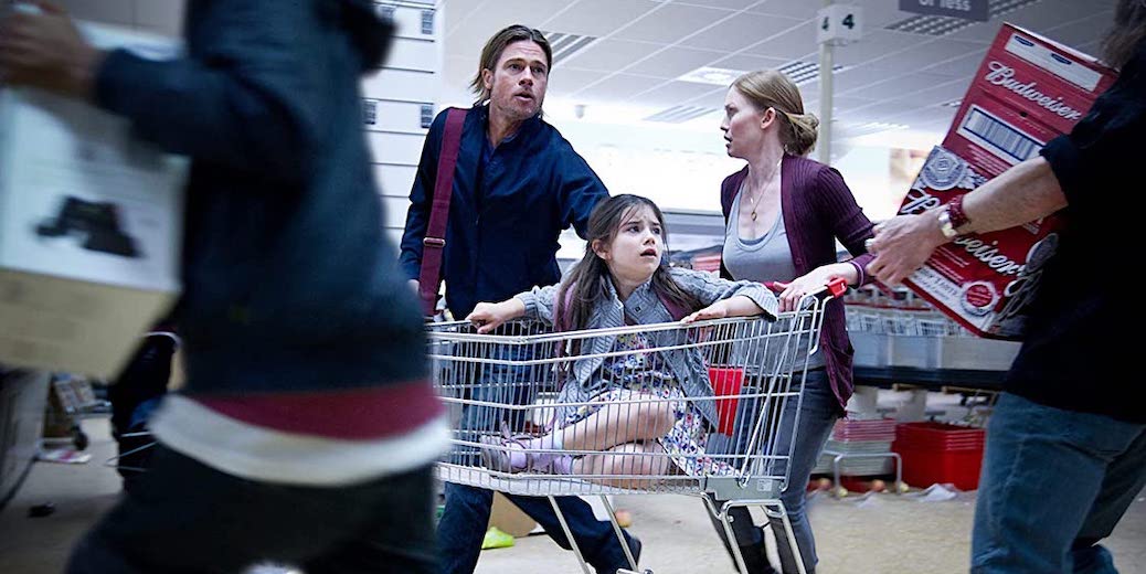 Brad Pitt é Gerry Lane, ex-analista de campo da ONU que resolveu virar simples pai de família em Filadélfia. Parados no trânsito, a caminho da escola, Gerry, sua mulher (Mireille Enos) e as duas filhas pequenas mal têm tempo de registrar os sinais – uma correria, um pânico súbito – de algo anormal: em segundos, pessoas de olhos esgazeados estão arrancando os passageiros de dentro dos carros, lançando-se de cabeça contra os para-brisas para arrebentá-los, mordendo aqueles que conseguem agarrar e transformando-os também, instantaneamente, em criaturas de agressividade incontrolável. Da fuga de Filadélfia para o abrigo em navios, e destes para a Coreia do Sul e Jerusalém – esta, uma sequência espetacular –, Guerra Mundial Z combina o terror puro e simples (e a maneira animalesca como os zumbis se movem, cooperando como uma colônia de insetos) com pinceladas de reflexão geopolítica. De quebra, surpreende com uma inversão: em vez de fazer a ação escalar até o bombástico, encerra-a com uma sequência quase silenciosa, num ambiente fechado e vazio, no qual meia dúzia de personagens tenta passar despercebida de um punhado de zumbis. Um dia, quem sabe, este misto tenso – e muitas vezes arrepiante – de terror e thriller há de ficar melhor ainda: apesar dos sucessivos adiamentos, não está eliminida a hipótese de que ele finalmente ganhe a continuação tão prometida.