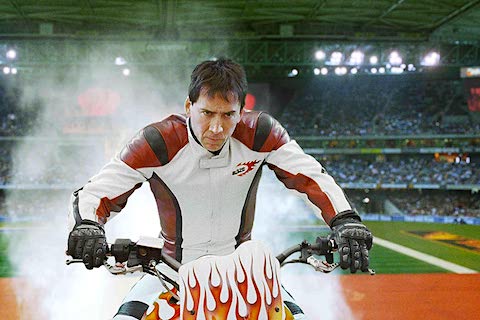 Nicolas Cage encabeça os créditos, mas está ausente de todas as grandes cenas de ação: é substituído, sem prejuízo, por um esqueleto em chamas, que pilota uma chopper dos diabos e despacha para o inferno malfeitores desta ou de outras dimensões. Essa é a forma que o personagem de Cage (e da Marvel), Johnny Blaze, assume na presença do mal, por causa de um pacto feito com Mefistófeles. E esse é o tipo de filme em que, já que tudo gira sobre duas rodas, Mefistófeles é interpretado por Peter Fonda (que morreu no ano passado e cuja fama, para quem é novo demais para pegar a referência, repousava sobre o longínquo, mas estilosamente motorizado, Sem Destino). O surpreendente é que Motoqueiro Fantasmaé uma das coisas mais divertidas – e bagaceira, verdade seja dita – que Cage já fez. Com os cabelos e o rosto retocados ao ponto do bizarro, ele deixa que o filme aconteça à sua volta, um desinteresse do qual se aproveitam muito bem o sempre cativante Sam Elliott, que faz render seu pequeno papel como o zelador de um cemitério, e o diretor Mark Steven Johnson, que depois daquele Demolidor de 2003 com Ben Affleck aprendeu a não fazer drama e investir na paródia.