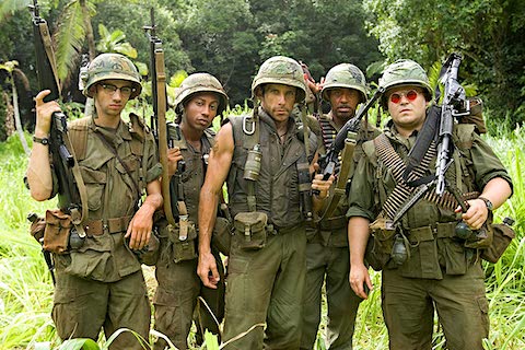 Trovão Tropical começa com um punhado de trailers que apresentam os protagonistas da história: o rapper Alpa Chino (Brandon T. Jackson), que promove uma bebida energética batizada Booty Sweat, de tradução impublicável; Jeff Portnoy (Jack Black), que faz todos os personagens de uma franquia cômica sobre uma família obesa e vítima de flatulência grave; Kirk Lazarus (Robert Downey Jr.), australiano ganhador de cinco Oscar, que é visto como um monge gay apaixonado pelo noviço Tobey Maguire no trailer do drama O Beco de Satã, título de insinuação perfeitamente intencional; e Tugg Speedman (Ben Stiller), um astro de ação que cinco vezes seguidas salvou o planeta do superaquecimento com uma metralhadora numa mão e um bebê na outra. Speedman tentou ganhar credibilidade com o drama Simplesmente Jack, no papel de um deficiente mental, e virou motivo de troça. Trovão Tropical, um épico sobre a Guerra do Vietnã, é sua chance de tirar o pé do buraco, e ele não quer deixá-la escapar – nem quando o diretor é destroçado por uma mina (todos acham se tratar de um efeito especial) nem quando, largado na selva, o elenco vira alvo de narcotraficantes. Que, por um desses acasos, assistem a Simplesmente Jack todas as noites, e adoram o filme. Um bônus:a participação de Tom Cruise no papel de um chefe de estúdio que vomita torrentes de obscenidades. O resultado: uma comédia tão licenciosa quanto radiante