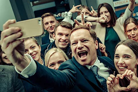 Tomasz (Maciej Musalowski) acaba de ser expulso da universidade por ter plagiado um trabalho. Mas, na visita aos Krasuck, a família muito rica que paga suas mensalidades, ele não apenas omite esse fato, como conta lorotas sobre sua adaptação ao curso. Insiste, ainda, em chamar o casal de “tio” e “tia”, como fazia na infância, quando eles alugavam a fazenda de seu pai nas férias – a familiaridade excessiva os constrange visivelmente –, e deixa entrever que sabe mais sobre a vida da filha, Gabi (Vanessa Aleksander), do que seria normal para alguém que tem tão pouco contato com ela. Na saída, finge esquecer o celular e o deixa gravando, para saber o que falaram dele na sua ausência (“esquisito” e “perturbador”, dizem eles, com razão, mas também com um desdém e uma zombaria que imediatamente os diminuem aos olhos do espectador). Tomasz, deduz-se pelas conversas, veio de uma família pobre, provinciana e disfuncional. Ele cobiça a vida dos Krasuck e cobiça sobretudo Gabi; está determinado a se insinuar no círculo deles. Para tanto, porém, precisa de algum dinheiro e de oportunidade, ambos conquistados por meio de sua vocação natural para o ressentimento. Em uma agência de relações-públicas que é, na verdade, um gabinete de ódio que clientes contratam para destruir concorrentes, ele floresce: tem o talento inato para trolar, desinformar, mentir, arruinar reputações, fomentar rancores. Tomasz adora o emprego, no qual vai muito além do que o dever exigiria. É um prazer para ele fingir que trabalha por um candidato liberal, amigo dos também eles muito liberais Krasuck, e ao mesmo tempo deflagar campanhas homofóbicas, racistas e nacionalistas contra ele nas redes – e, a partir de certo momento, não só nelas. Só posso imaginar quantos Tomasz estão espalhados pelo mundo neste momento, dando o pior de si, como profissionais ou como amadores.